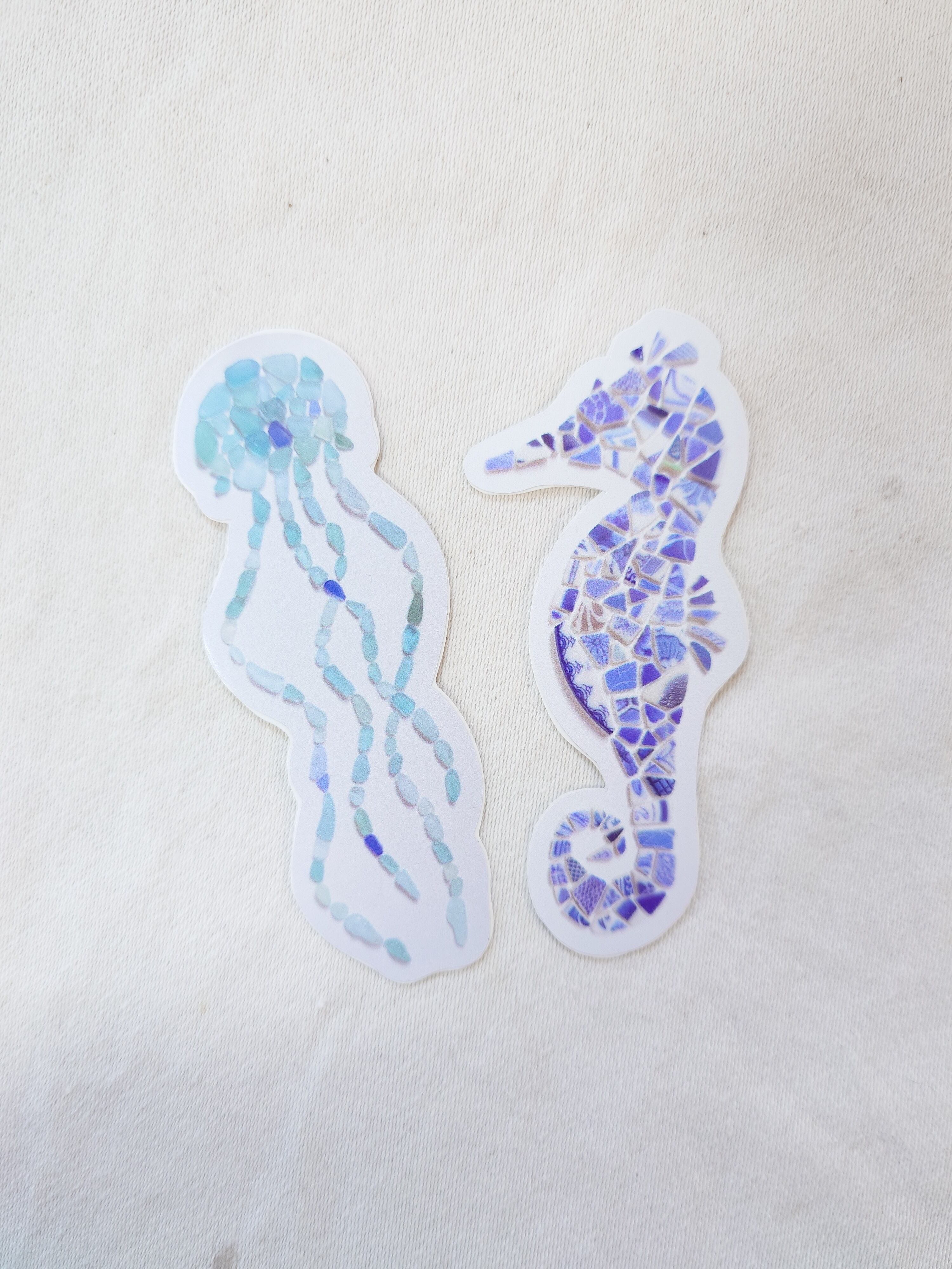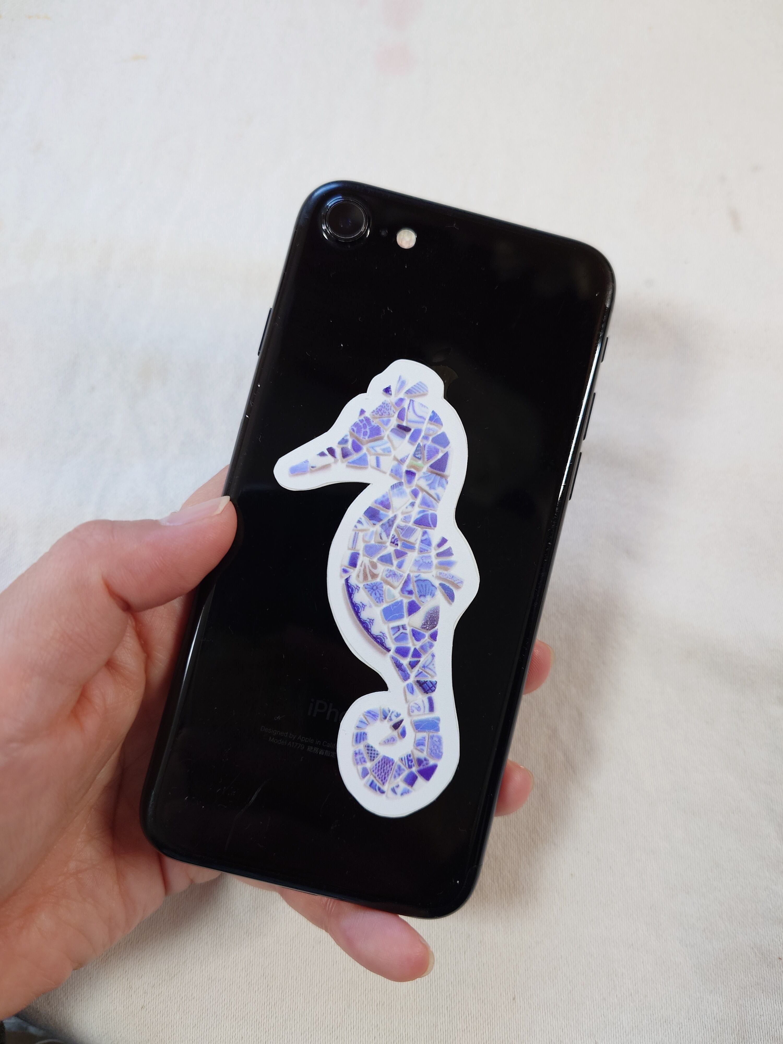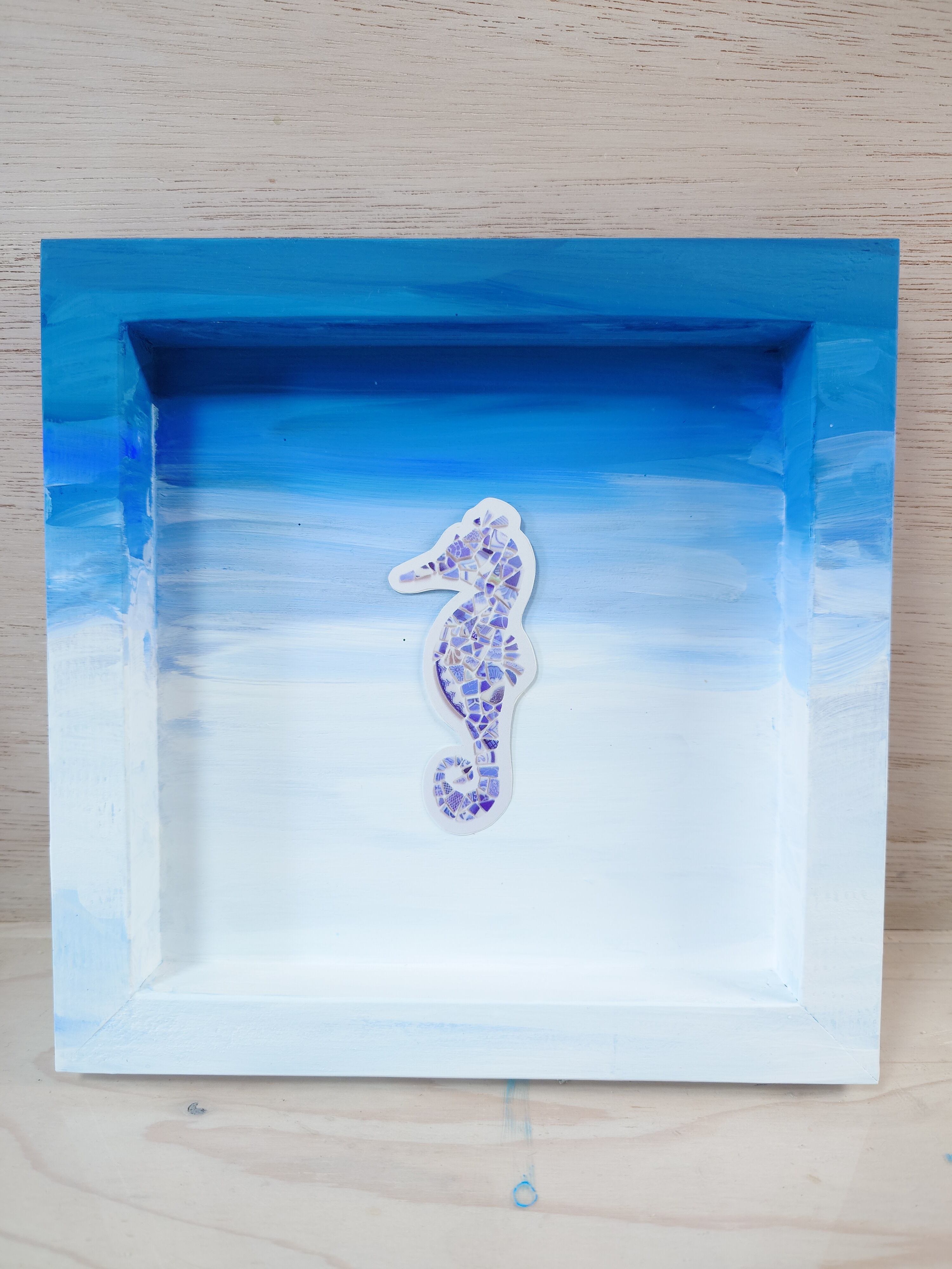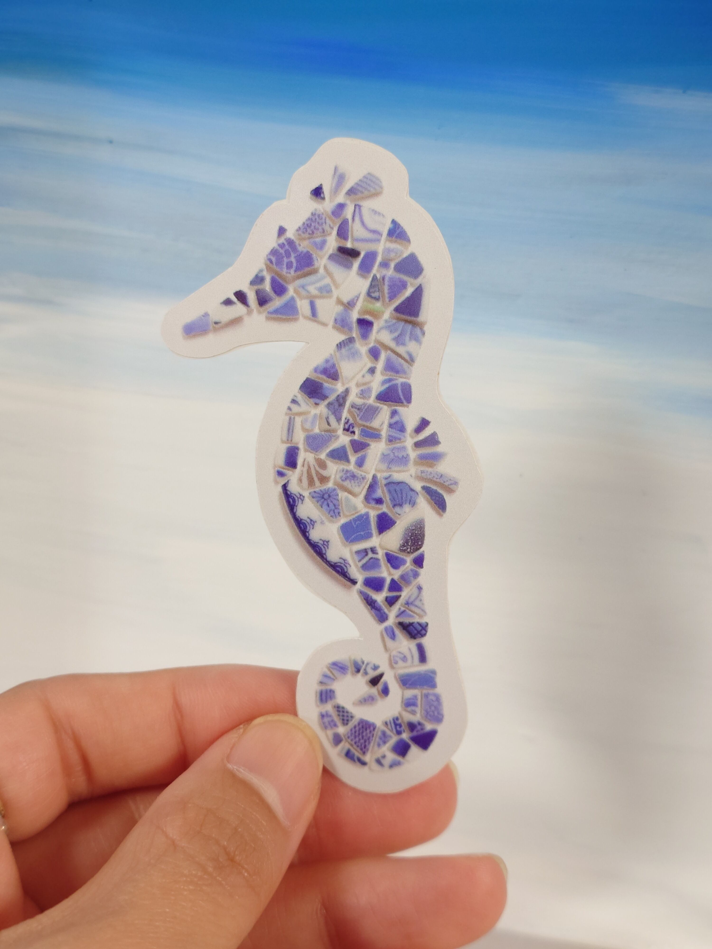 ◎縁起物とされるタツノオトシゴを元の器などの絵柄が残る陶器のカケラで凛々しく仕上げました