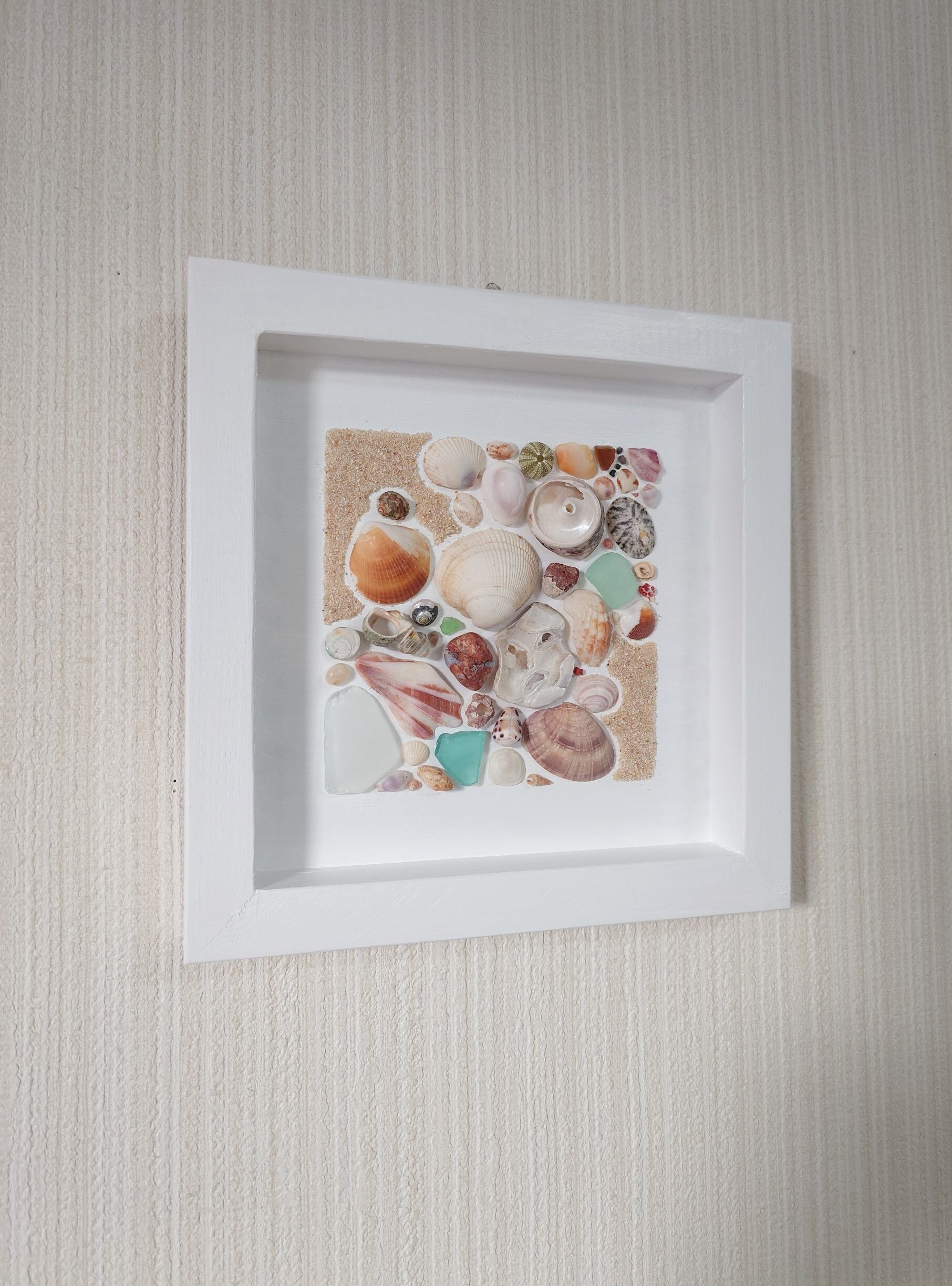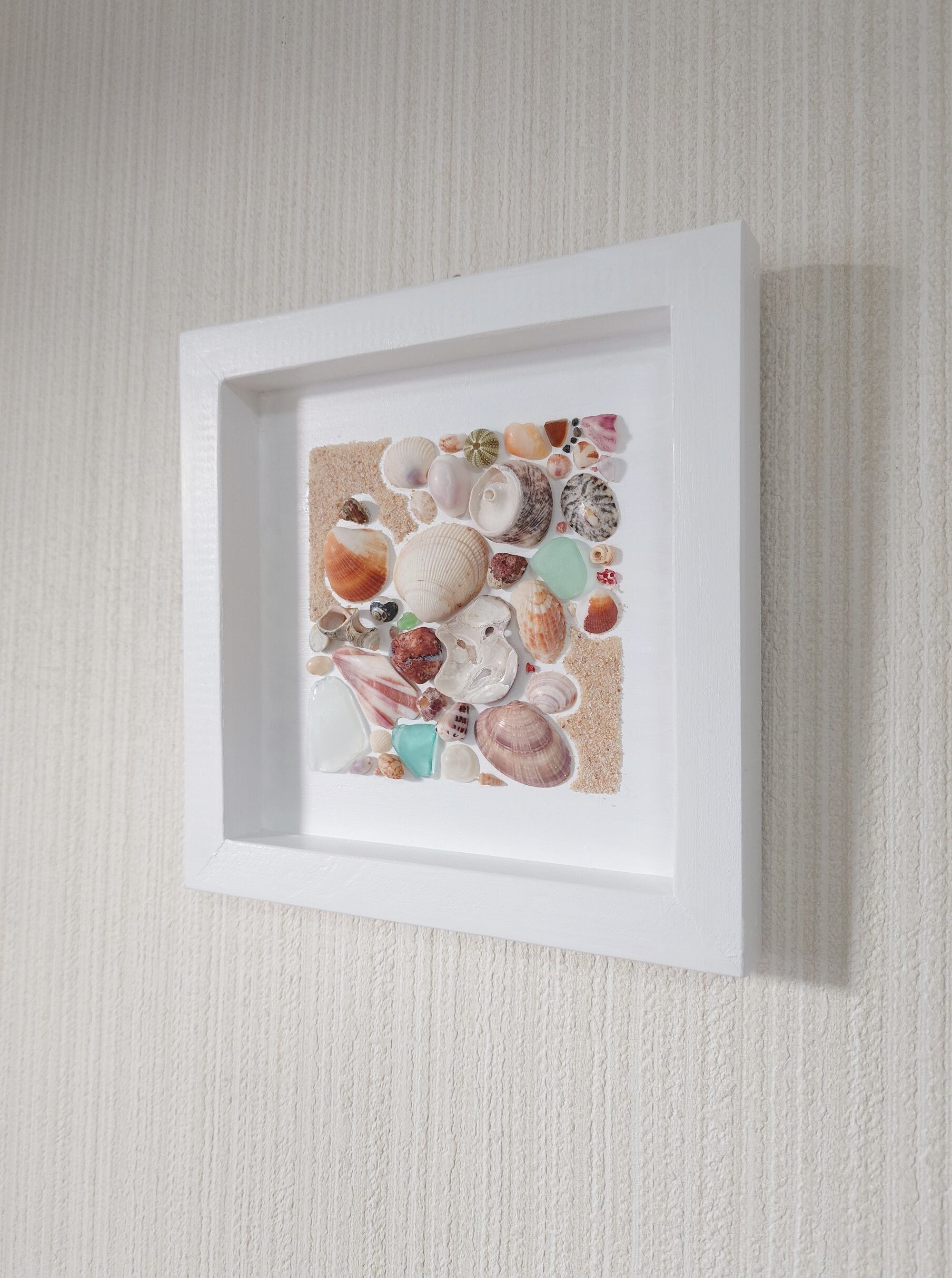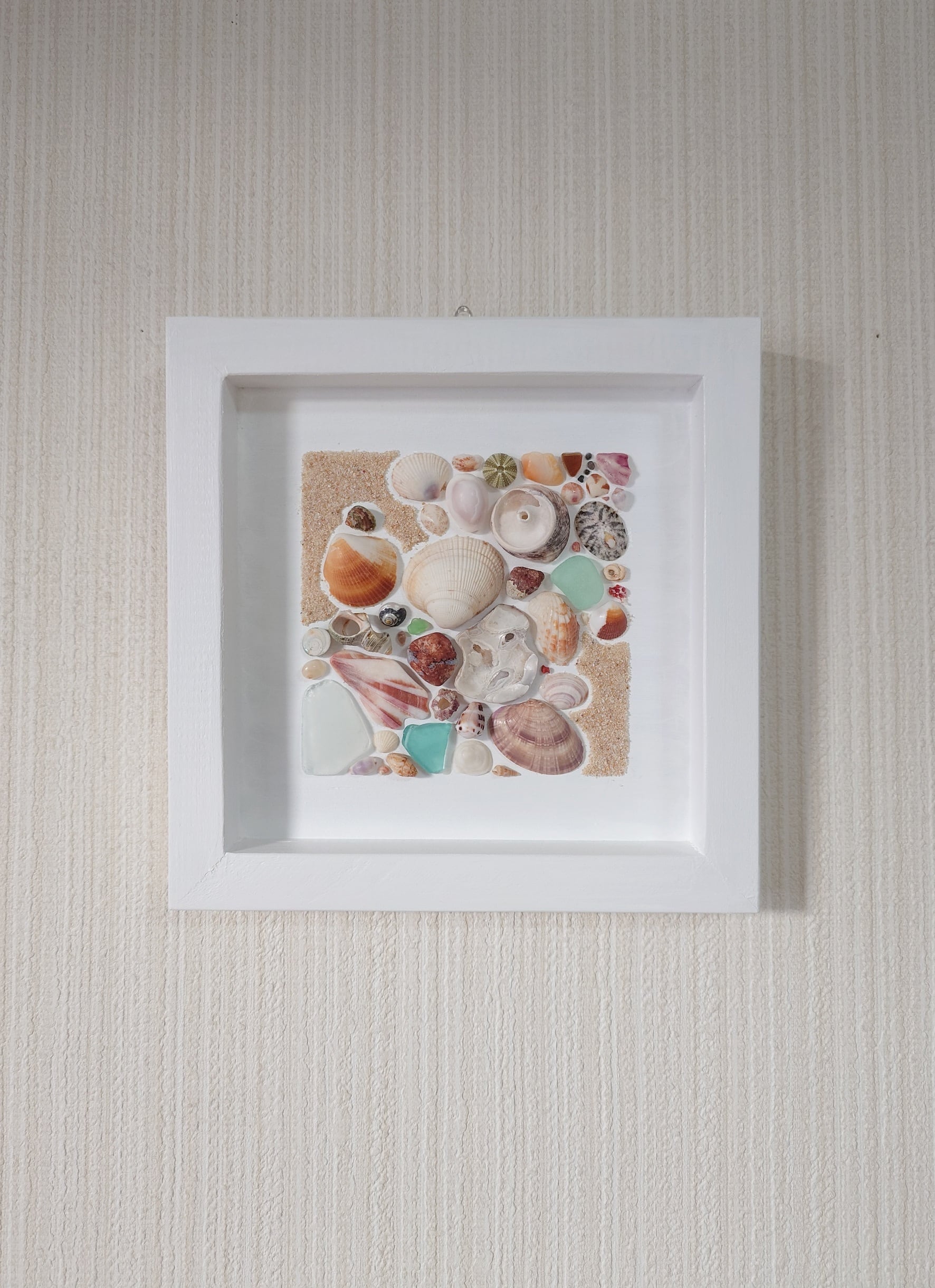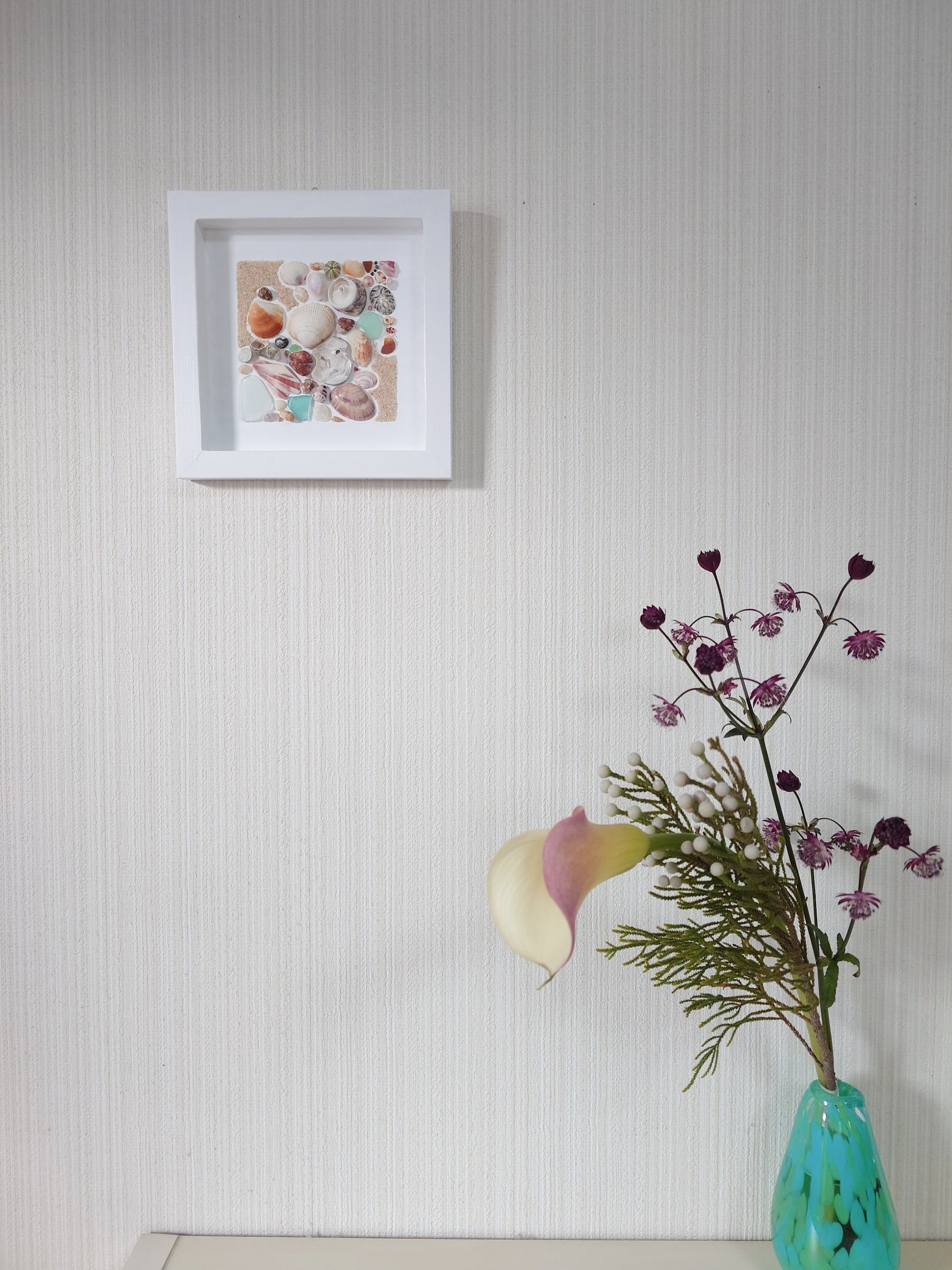 海辺で出会った貝殻やシーグラスを使って、穏やかな時間を感じられるように作品をつくっています。 貝やシーグラスなどは自分で集めており、自然が生み出したそのままの色、かたちを大切にしています。