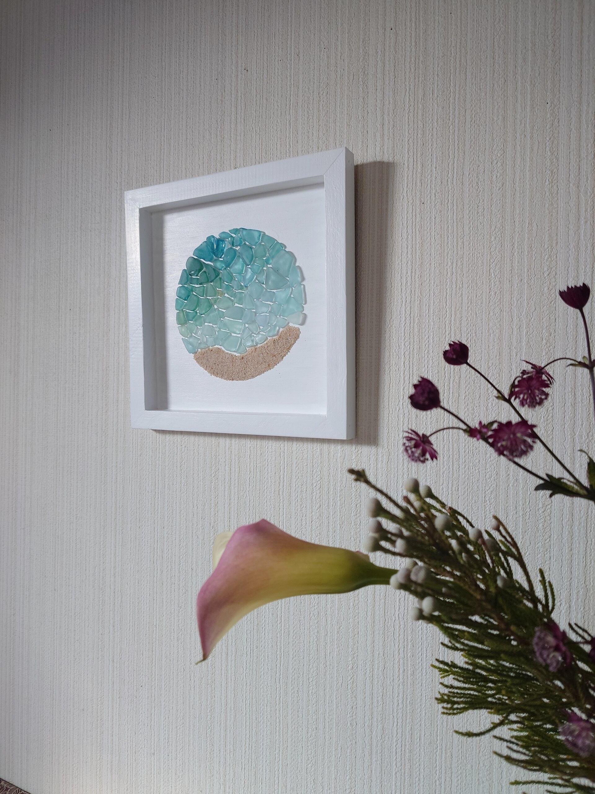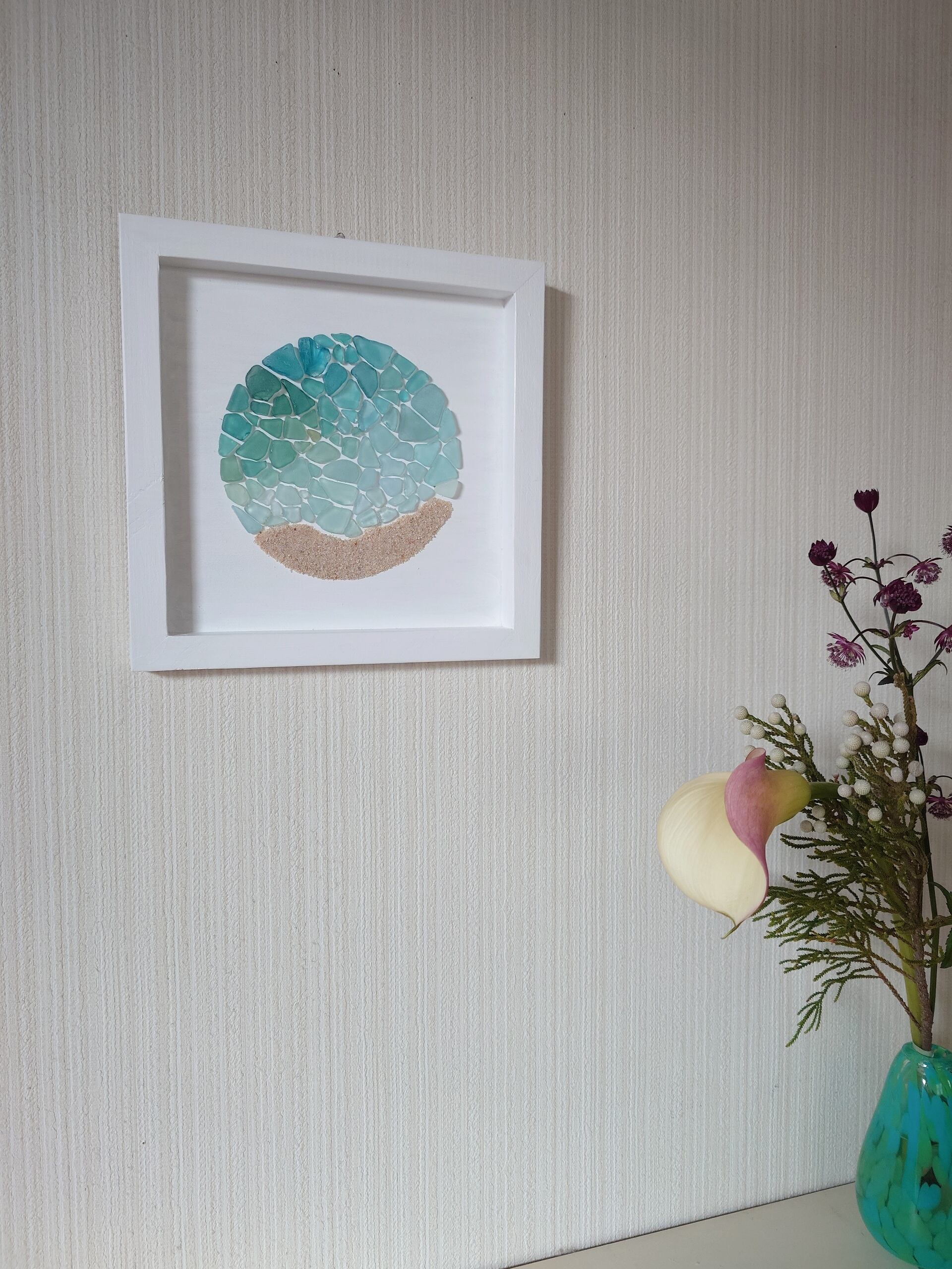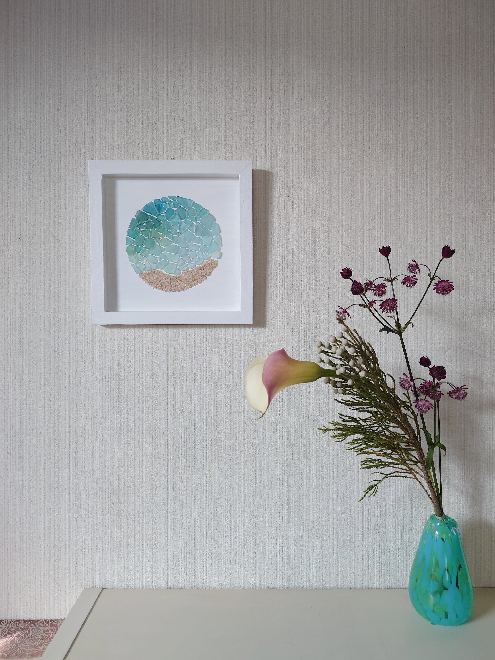 海辺で出会った貝殻やシーグラスを使って、穏やかな時間を感じられるように作品をつくっています。 貝やシーグラスなどは自分で集めており、自然が生み出したそのままの色、かたちを大切にしています。