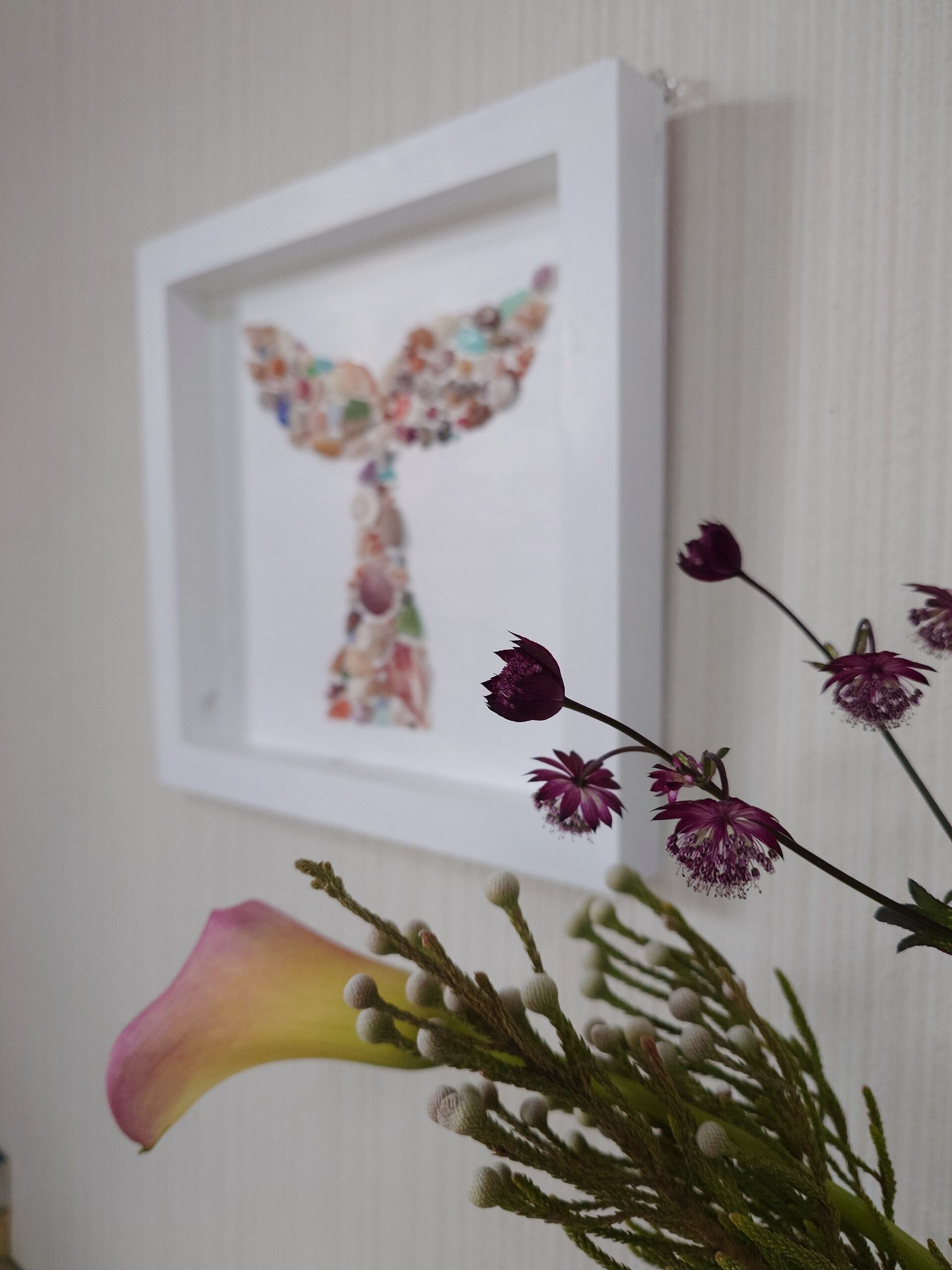 海辺で出会った貝殻やシーグラスを使って、穏やかな時間を感じられるように作品をつくっています。 貝やシーグラスなどは自分で集めており、自然が生み出したそのままの色、かたちを大切にしています。