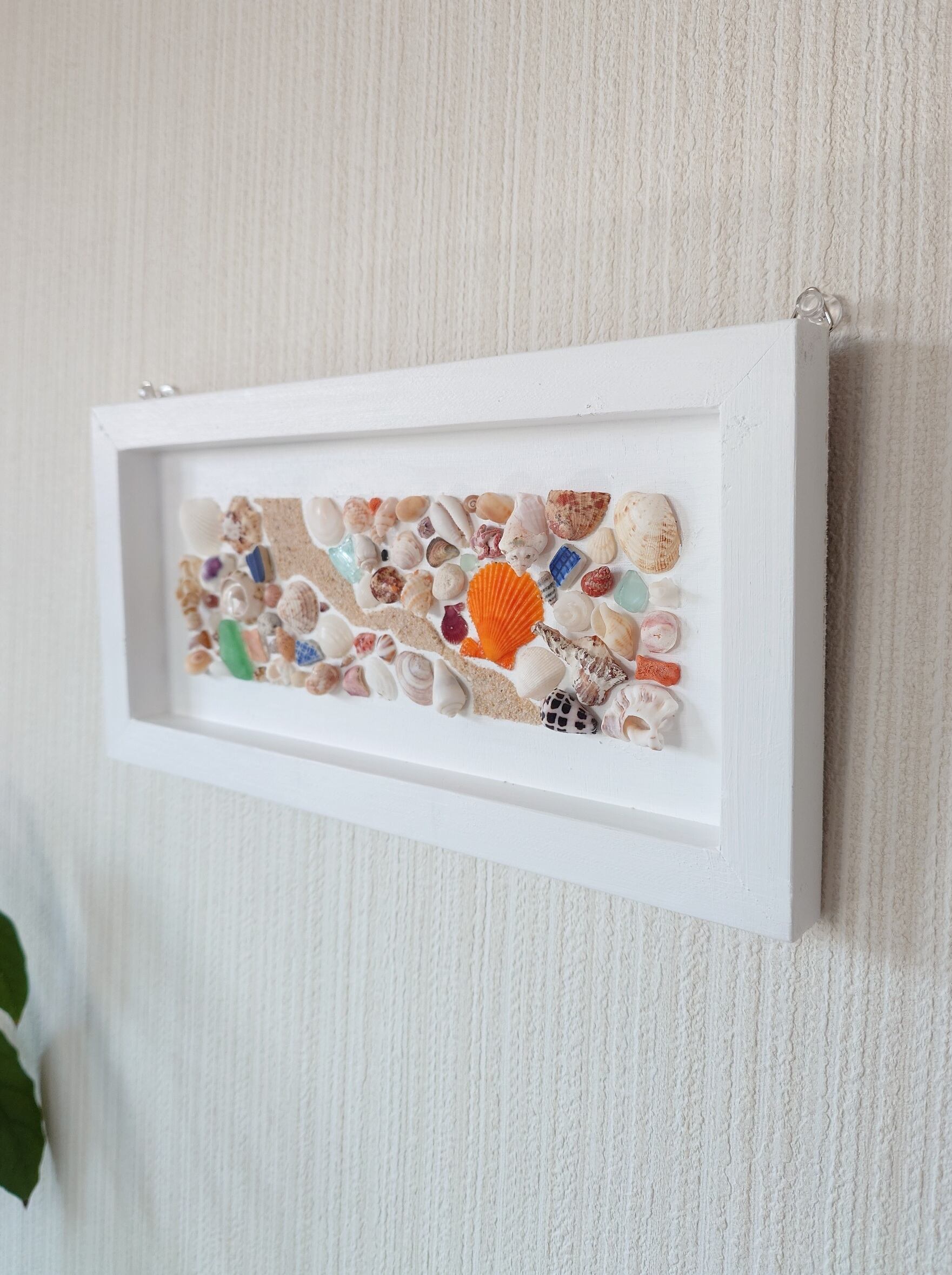 海辺で出会った貝殻やシーグラスを使って、穏やかな時間を感じられるように作品をつくっています。 貝やシーグラスなどは自分で集めており、自然が生み出したそのままの色、かたちを大切にしています。